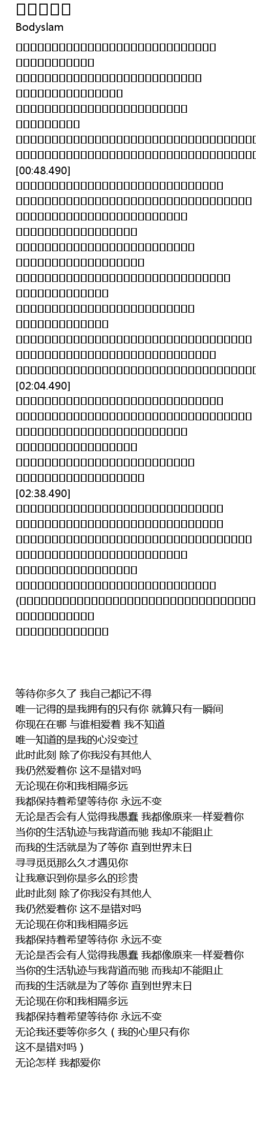 | [00:06.490] | 等待你多久了 我自己都记不得 |
