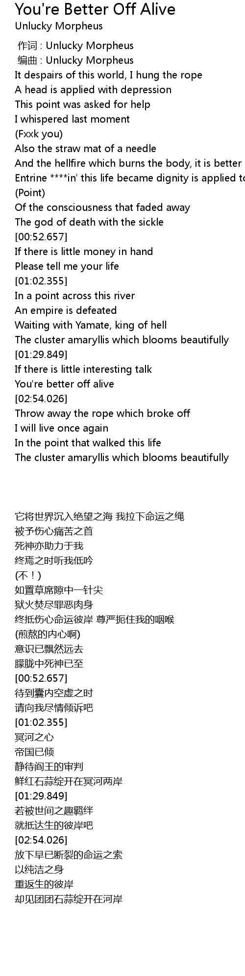 | [00:00.000] | 作词 : Unlucky Morpheus |