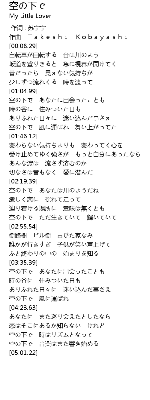 | [02:19.72] | 空の下で あなたは川のようだね |