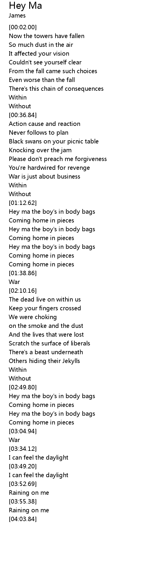 [02:50.86] Hey ma the boy's in body bags