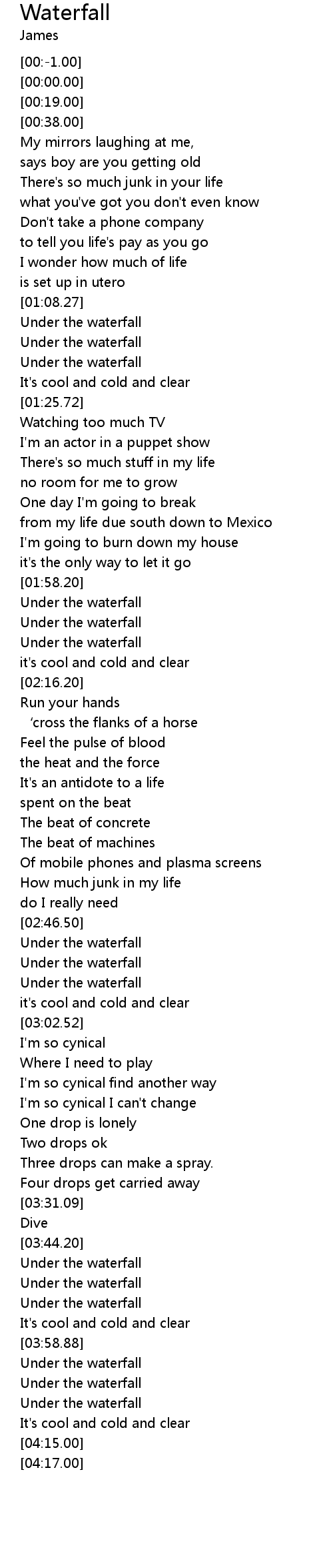 | [01:18.75] | Under the waterfall |