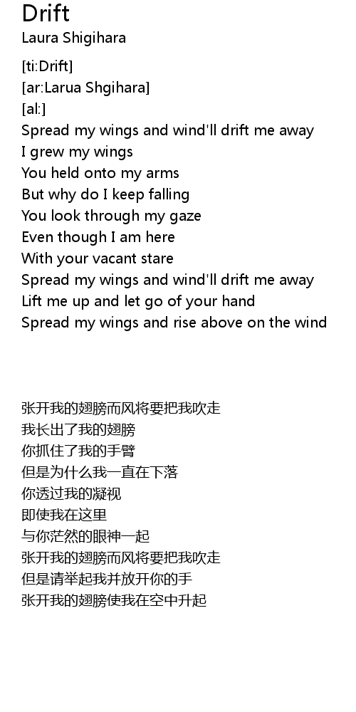| [00:00.30] | Spread my wings and wind'll drift me away |