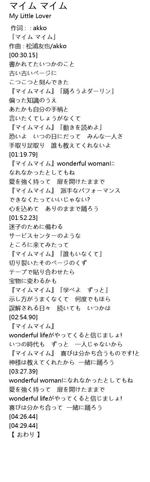 | [01:20.66] | 『マイムマイム』wonderful womanに |