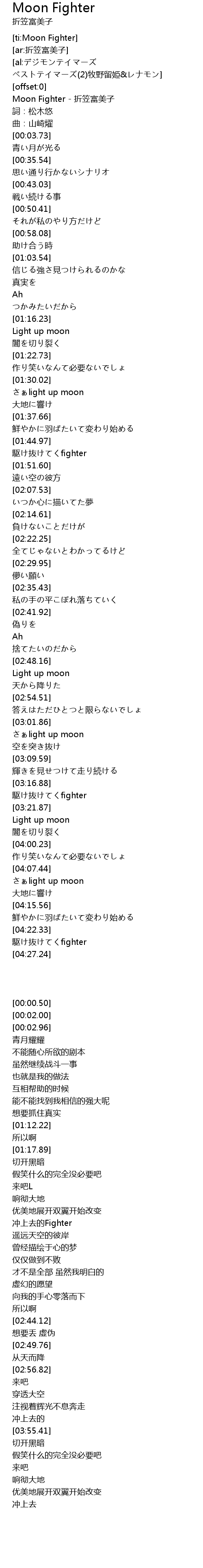 | [00:00.50] | Moon Fighter - 折笠富美子 |