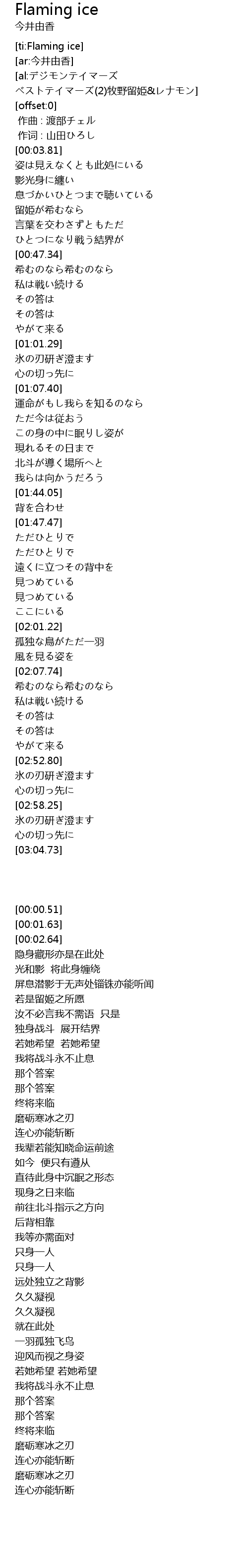 | [02:59.98] | 氷の刃研ぎ澄ます |