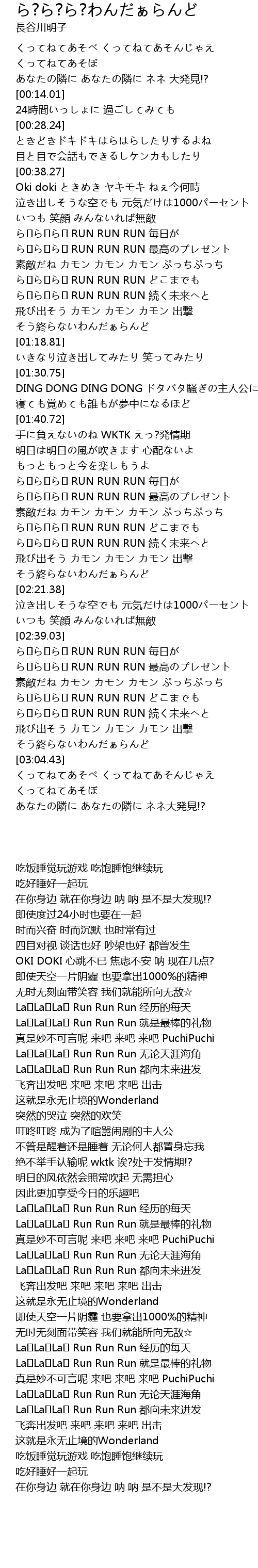 | [02:53.02] | ら♪ら♪ら♪ RUN RUN RUN 続く未来へと |