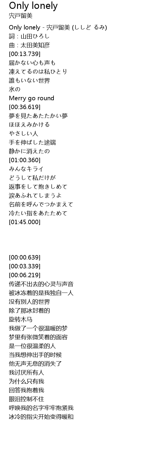 | [00:00.639] | Only lonely - 宍戸留美 (ししど るみ) |