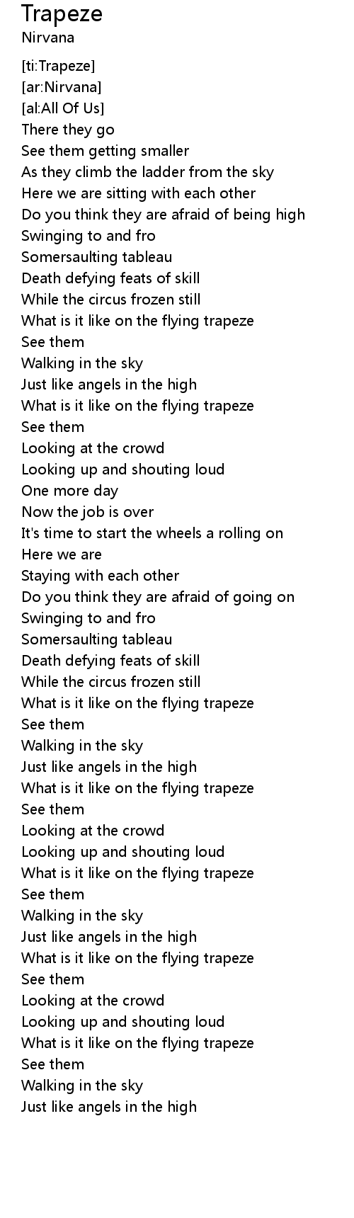 | [00:49.50] | What is it like on the flying trapeze |