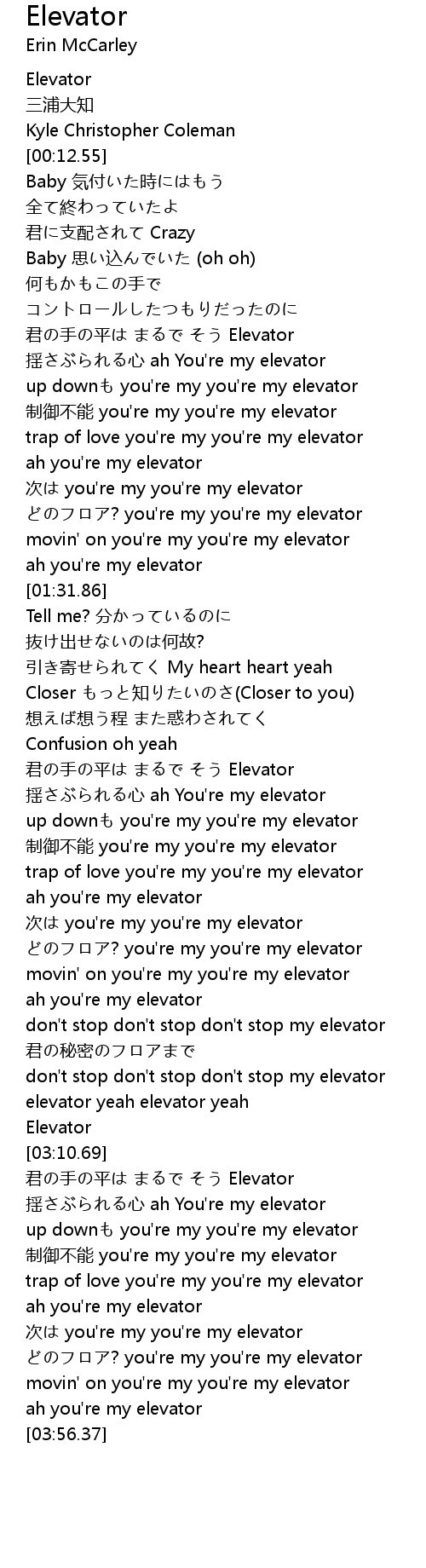 | [02:56.09] | don't stop don't stop don't stop my elevator |