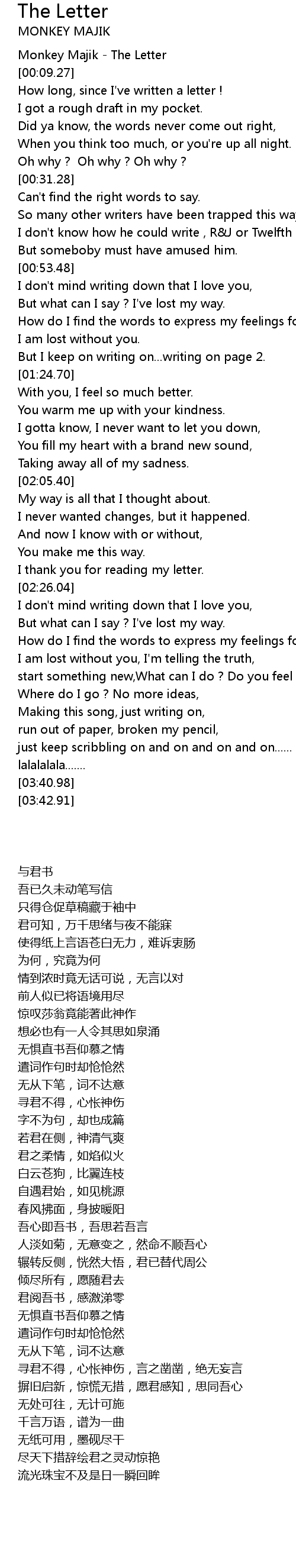Monkey Majik - The Letter |