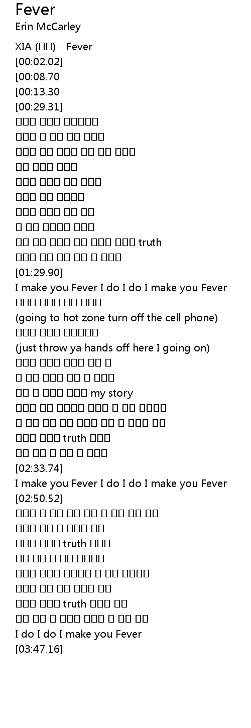 | [02:34.17] | I make you Fever I do I do I make you Fever |