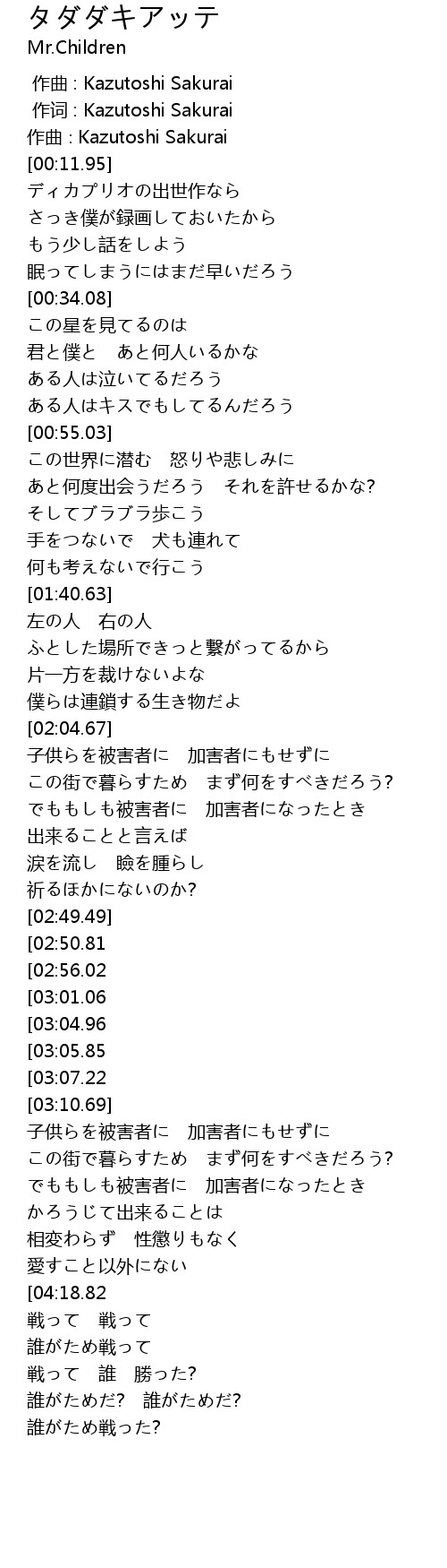 | [00:01.00] | zuò cí : Kazutoshi Sakurai |