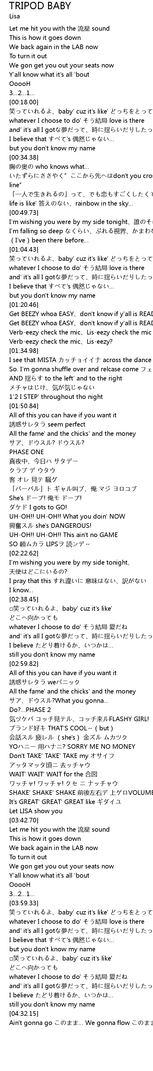 | [03:23.64] | YOハニー 用ハナニ? SORRY ME NO MONEY |