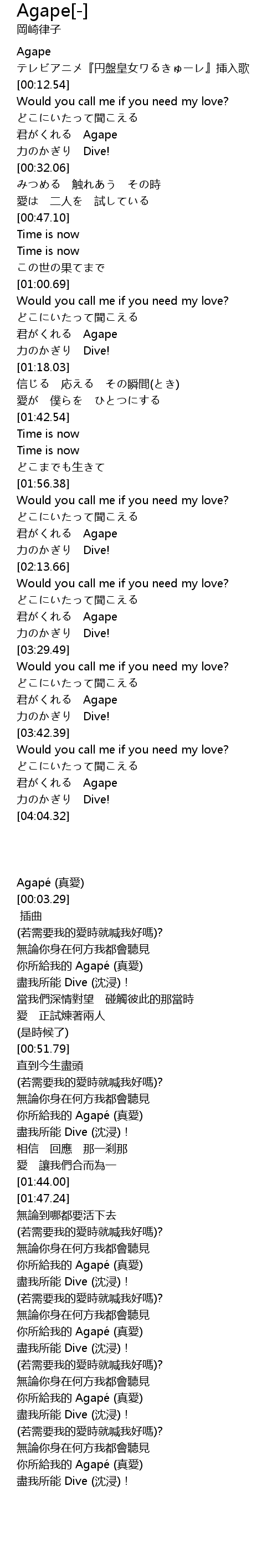 | [00:00.00] | Agapé (真愛) |