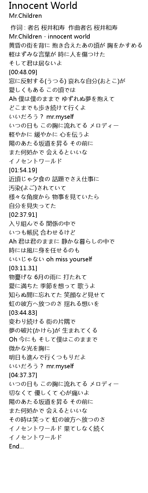 | [00:00.00] | Mr. Children innocent world |