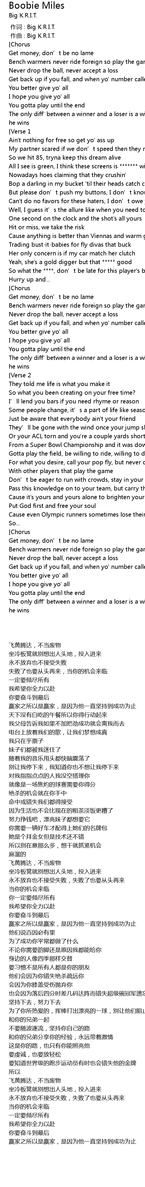| 歌曲 | Boobie Miles |