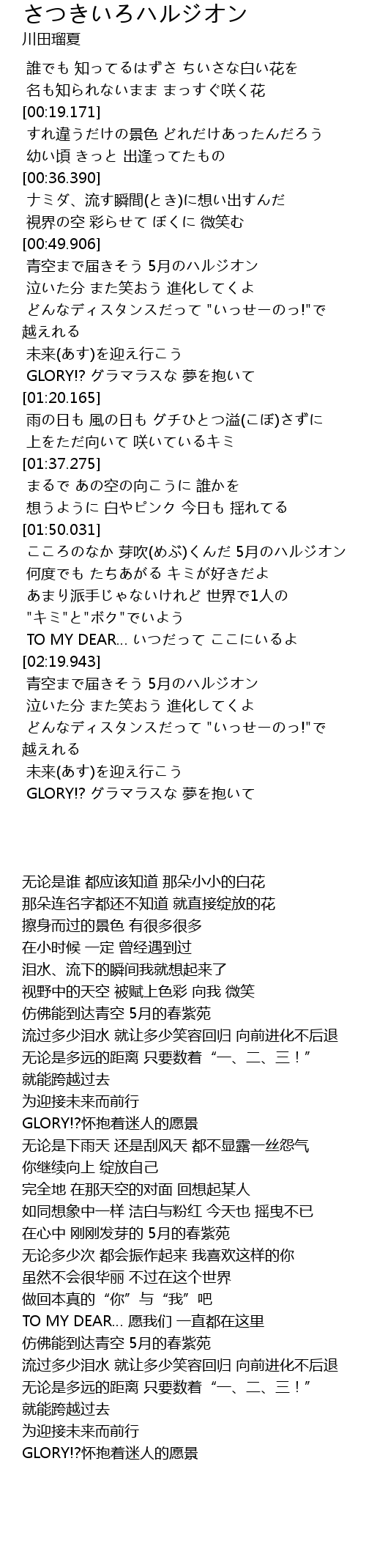 | [00:50.774] | 青空まで届きそう 5月のハルジオン |