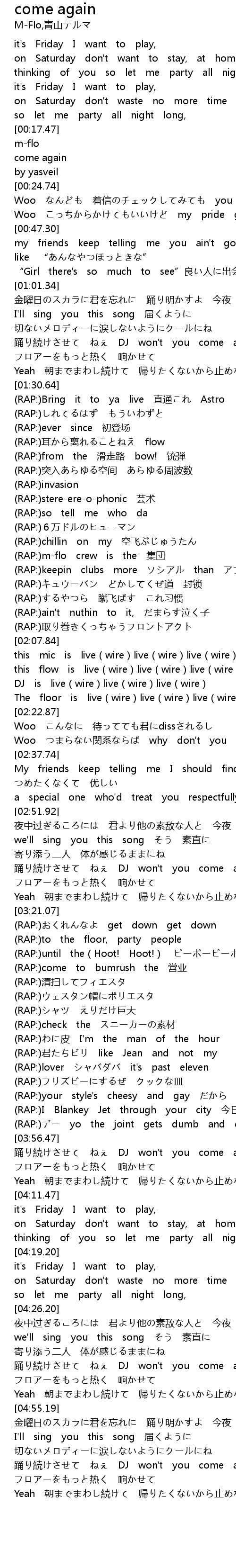 | [03:06.77] | 踊り続けさせて ねぇ DJ won't you come again |