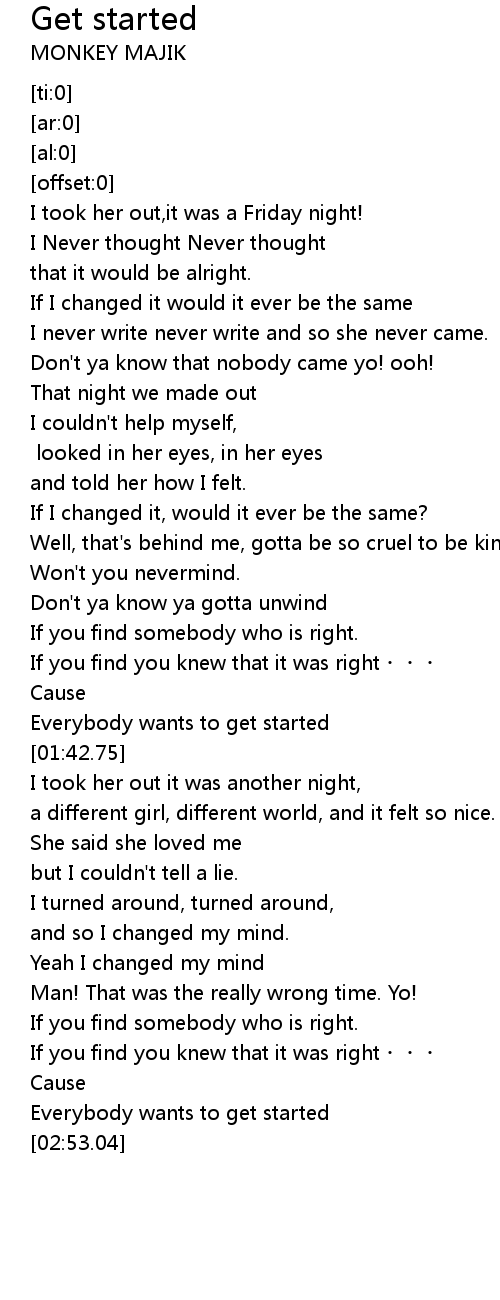 | [01:09.73] | Don' t ya know ya gotta unwind |