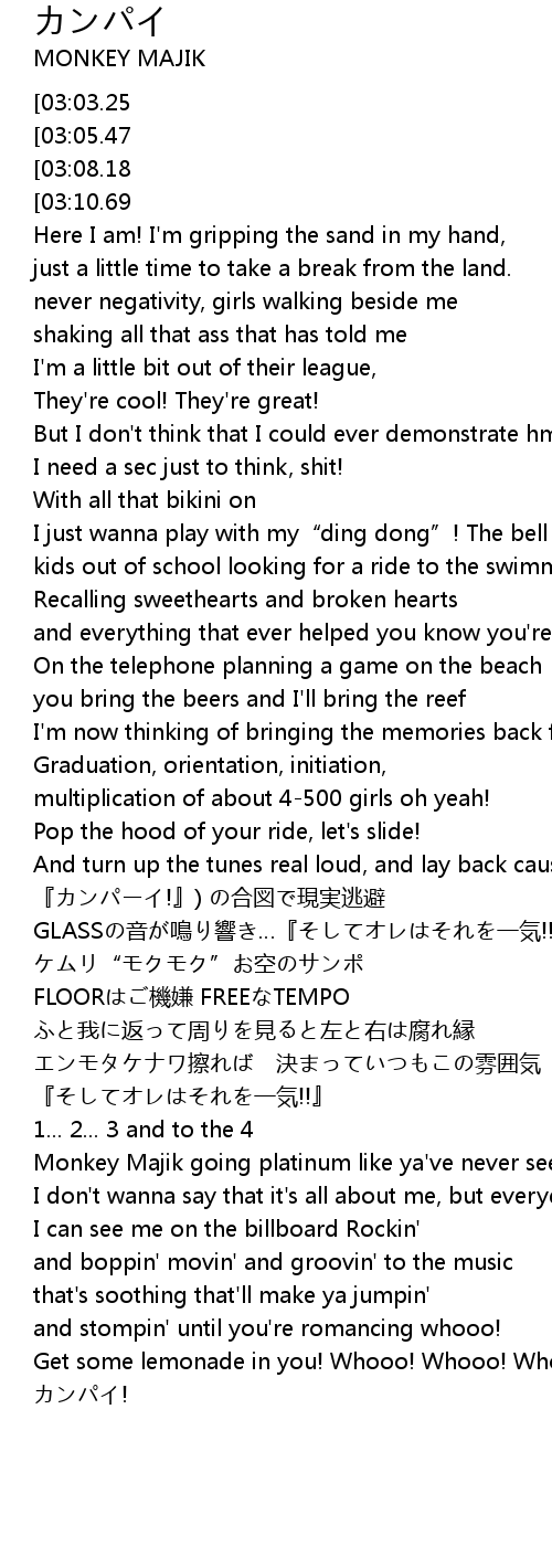 | [02:19.62] | Get some lemonade in you! Whooo! Whooo! Whooo! |