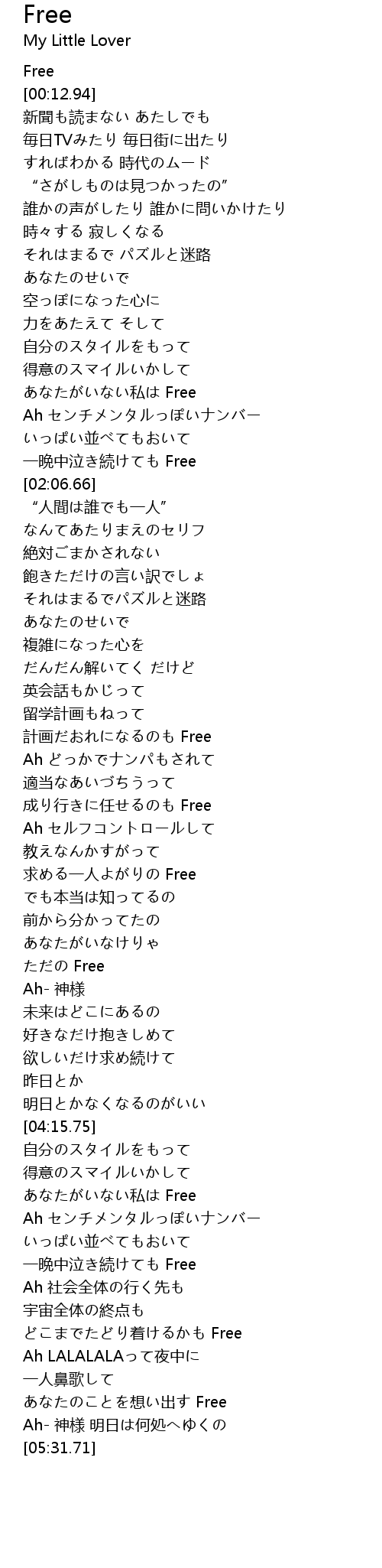 | [05:05.32] | どこまでたどり着けるかも Free |