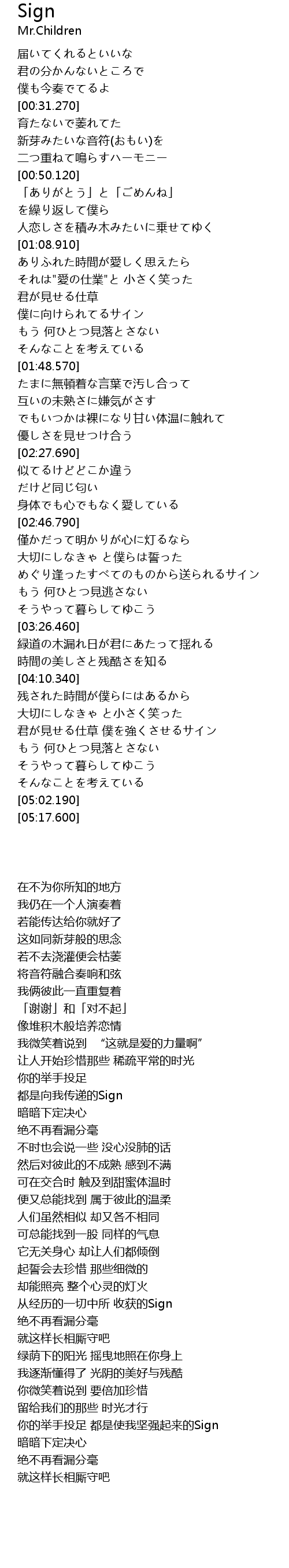 | 歌曲 | Sign |