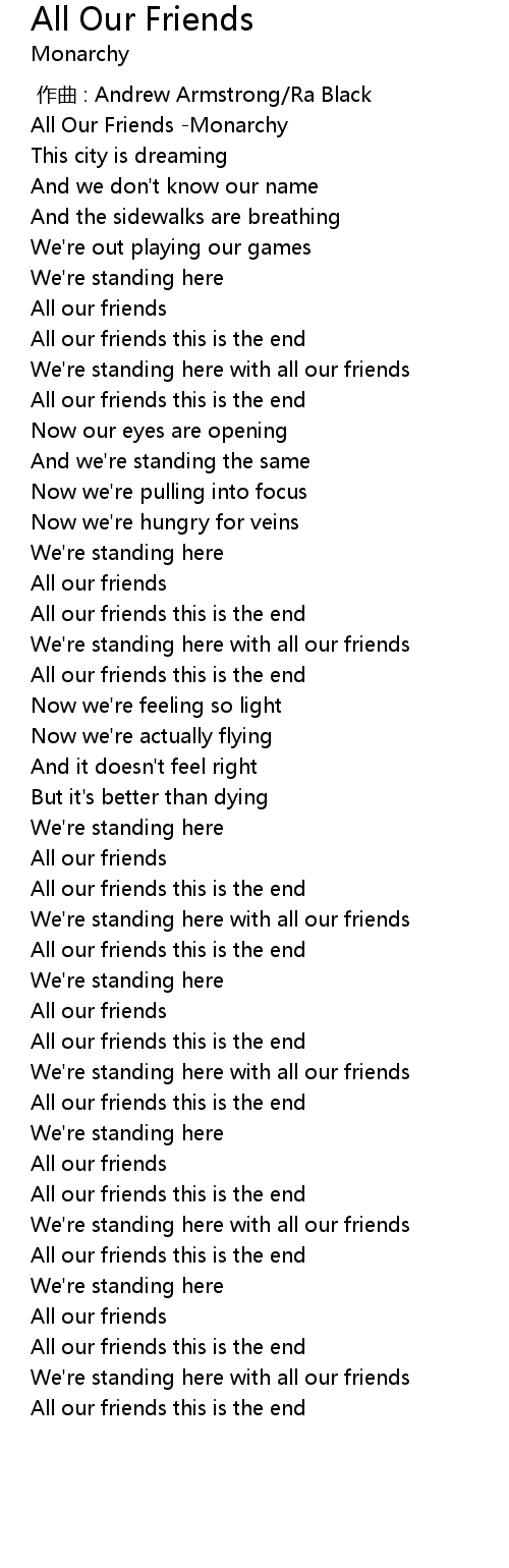 | [00:00.00] | All Our Friends -Monarchy |