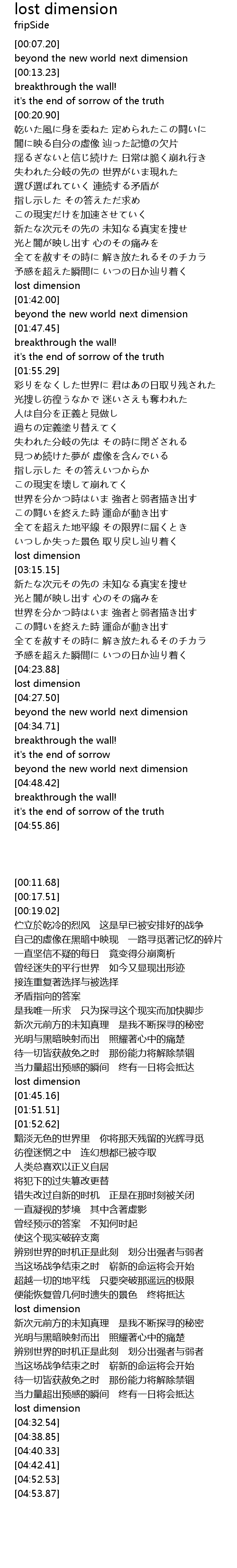| [03:44.23] | 新次元前方的未知真理 是我不断探寻的秘密 |