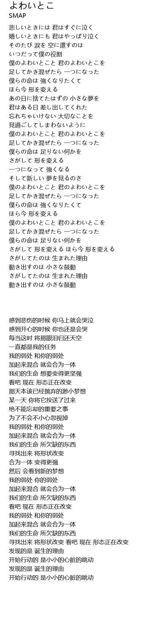 嬉しいときにも 君はやっぱり泣く |