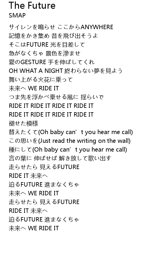 | [03:22.01] | RIDE IT 未来へ |
