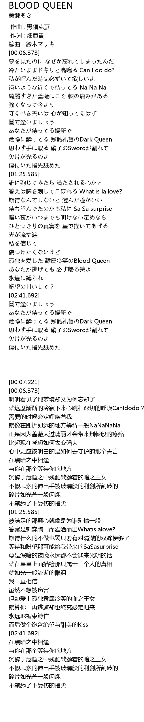 | [03:15.559] | 危険に酔ってる 残酷礼賛のDark Queen |