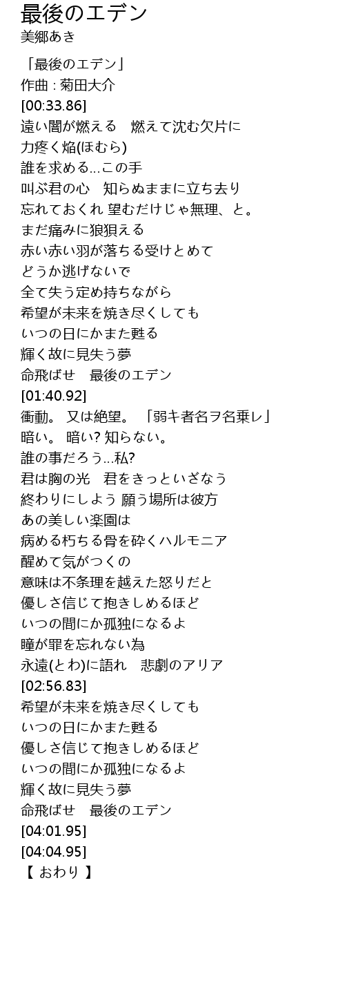 | [03:56.28] | 命飛ばせ 最後のエデン |