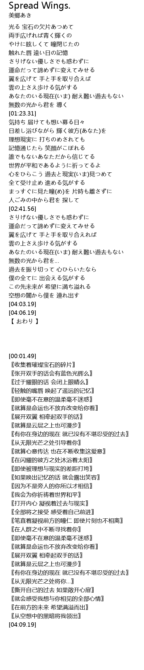 | [03:12.47] | 翼を広げて 手と手を取り合えれば |