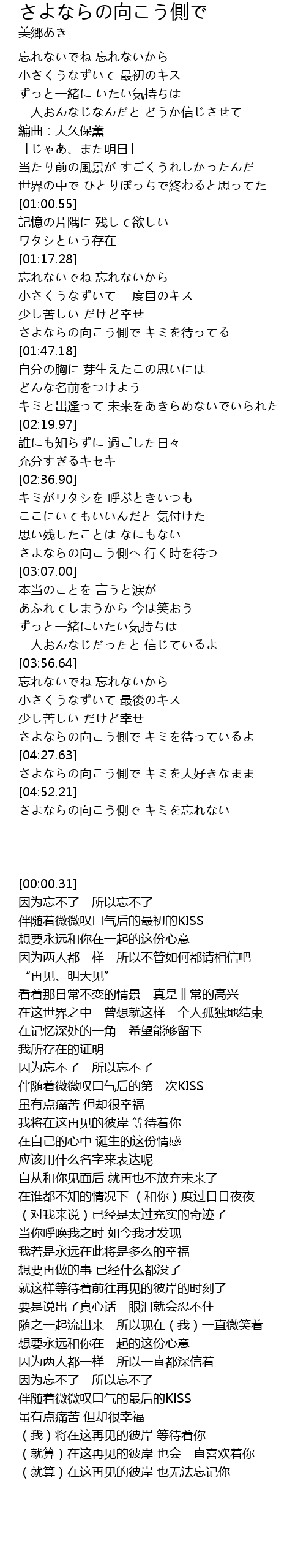 (就算)在这再见的彼岸 也无法忘记你 |