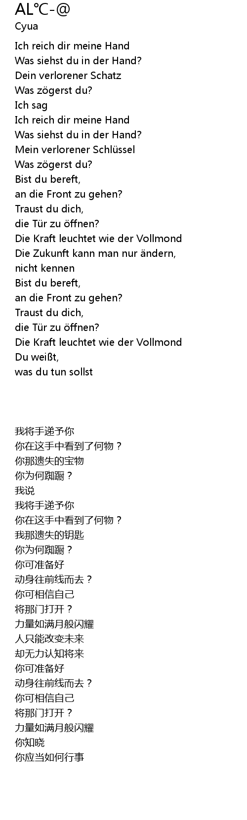 | [00:46.200] | Ich reich dir meine Hand |