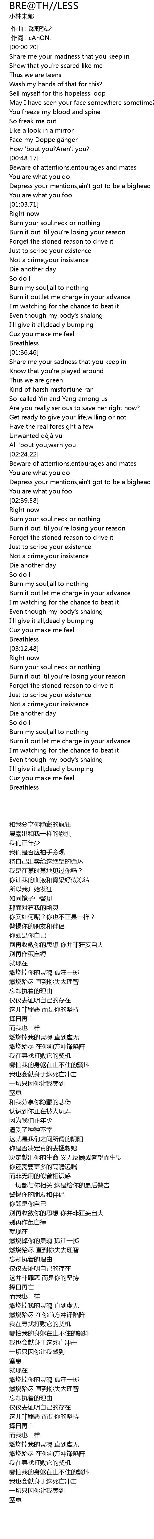 | 歌曲 | BRE@TH//LESS |
