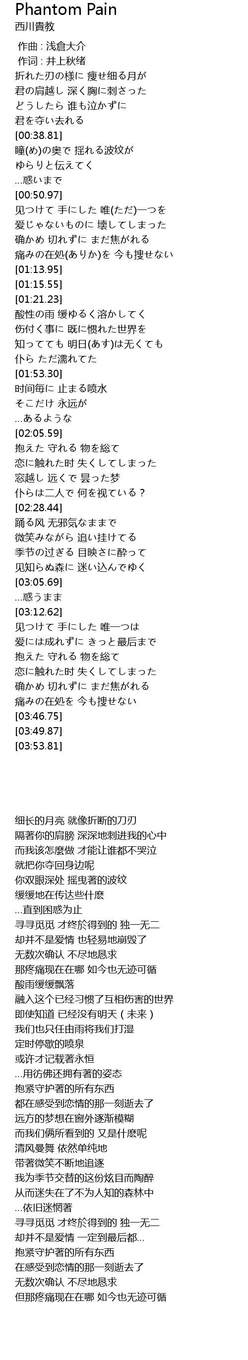 | [03:37.58] | 痛みの在処を 今も捜せない |