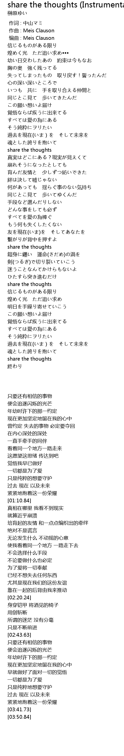 | 歌曲 | share the thoughts (Instrumental) |
