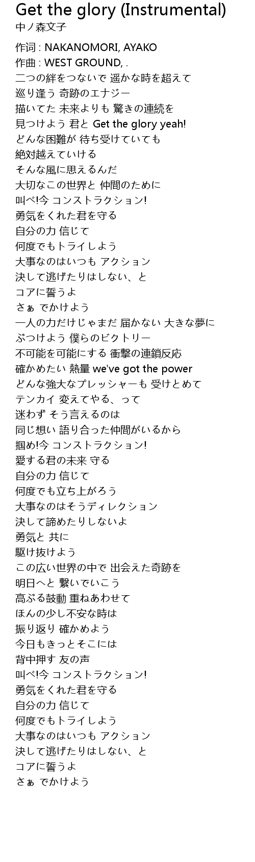 | 歌曲 | Get the glory (Instrumental) |