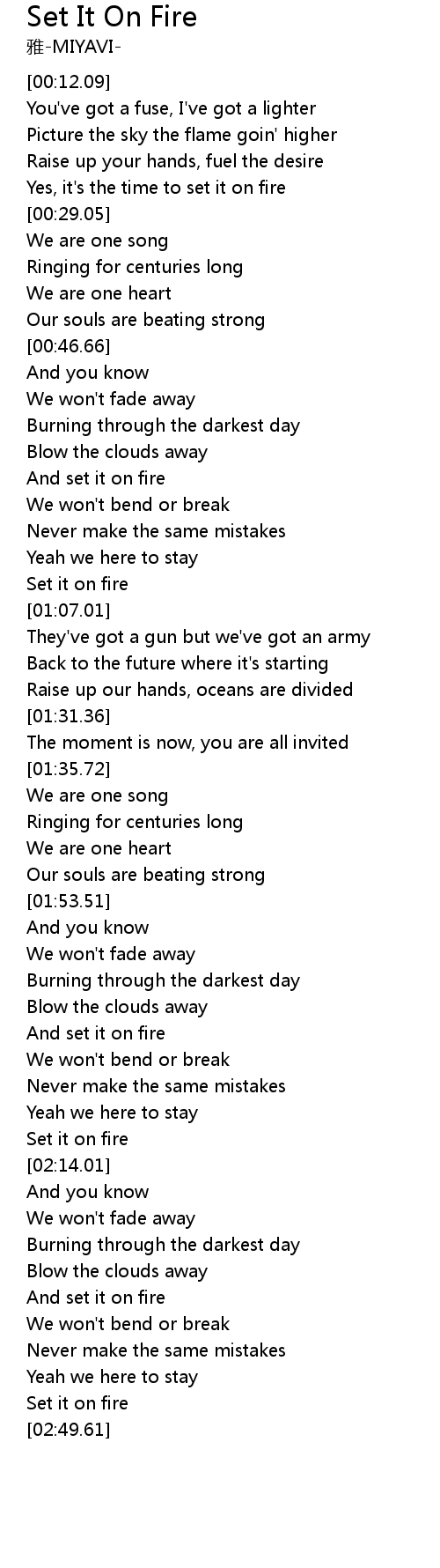 | [02:11.22] | Set it on fire |