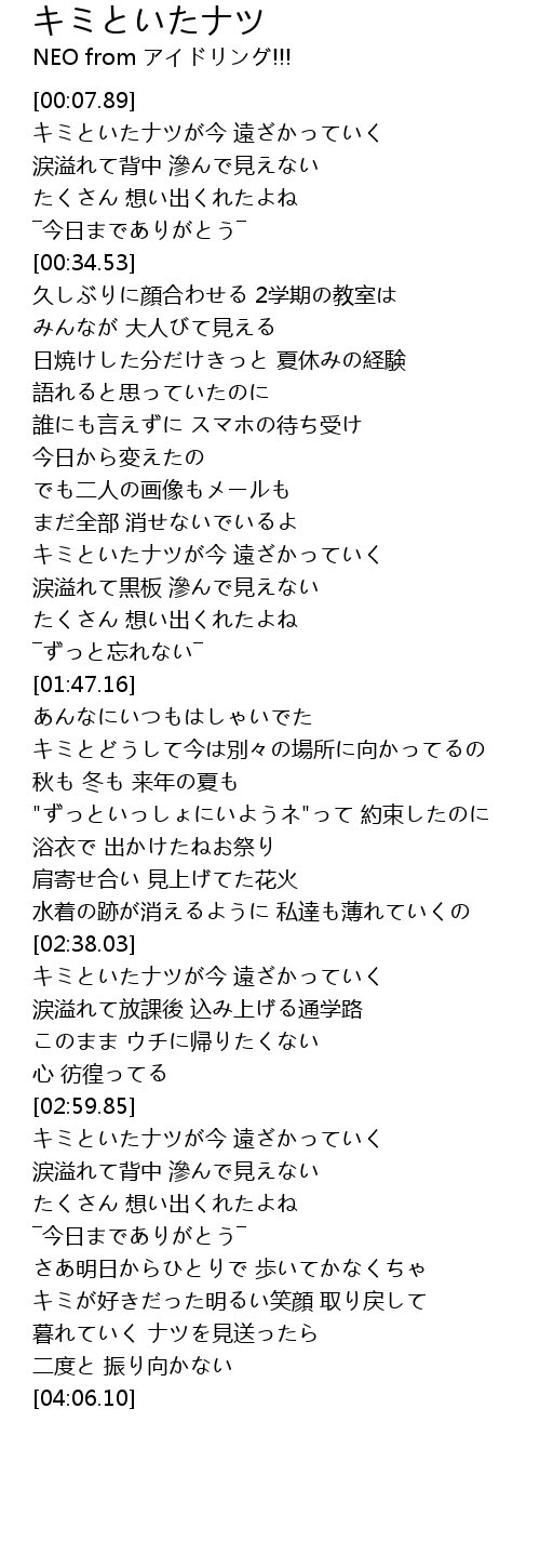 | [00:10.57] | キミといたナツが今 遠ざかっていく |