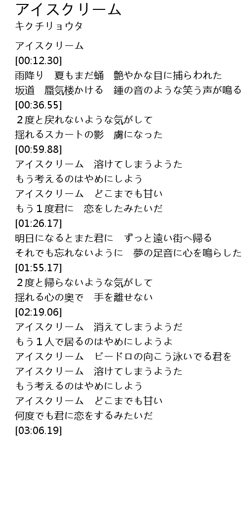 | [01:11.31] | アイスクリーム どこまでも甘い |