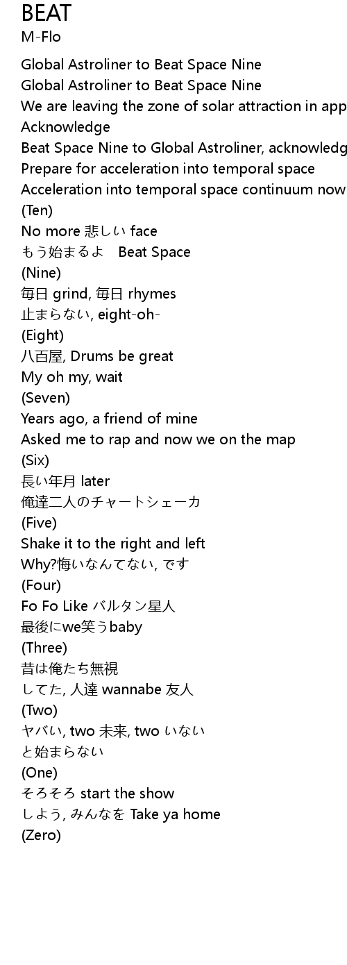 | Beat Space Nine to Global Astroliner, acknowledged | |