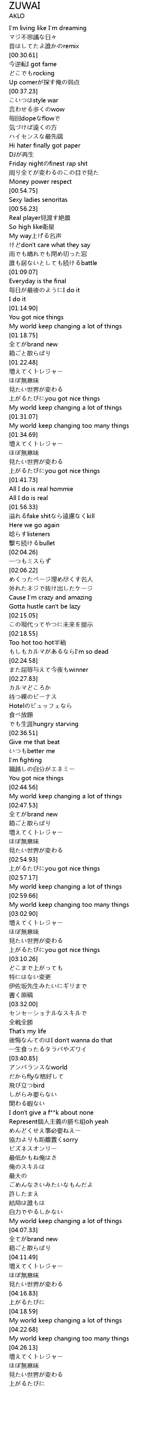 | [01:56.89] | 溢れるfake shitなら遠慮なくkill |