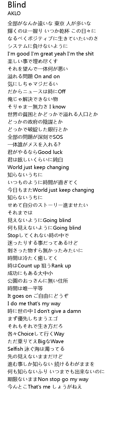 | 歌曲 | Blind |
