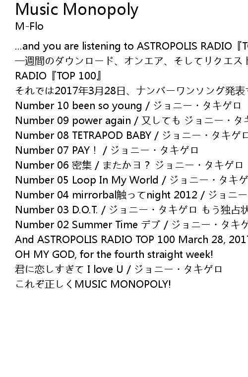 | ...and you are listening to ASTROPOLIS RADIO『TOP 100』 | |