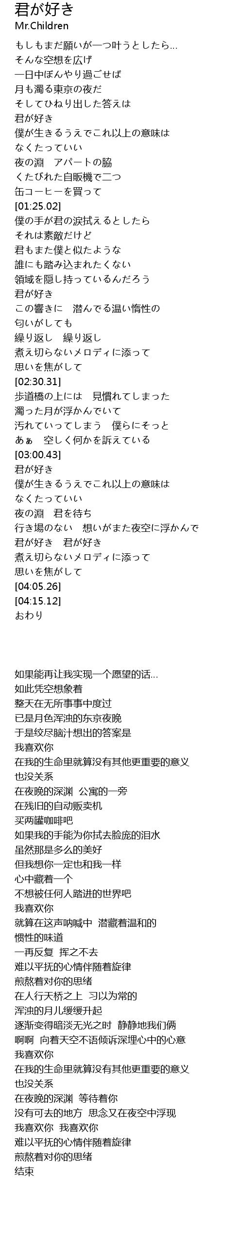 | [03:47.61] | 君が好き 君が好き |