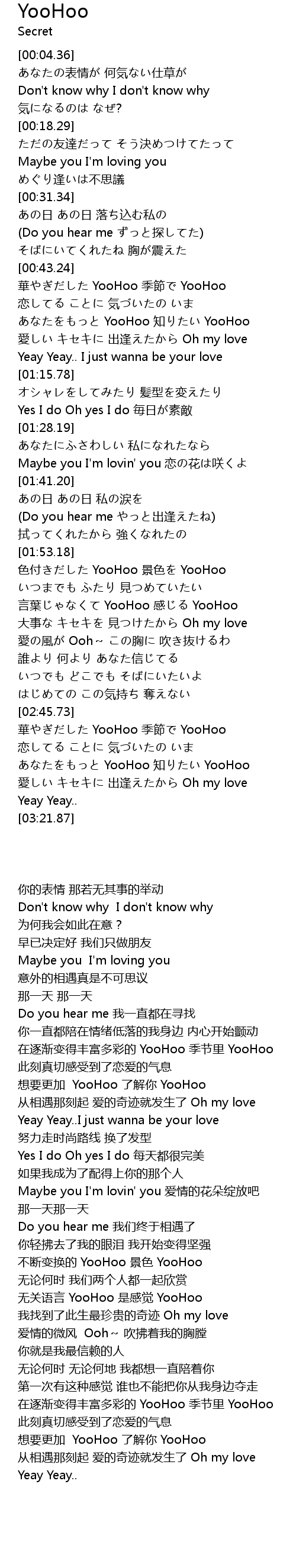 | [03:01.86] | 想要更加 YooHoo 了解你 YooHoo |