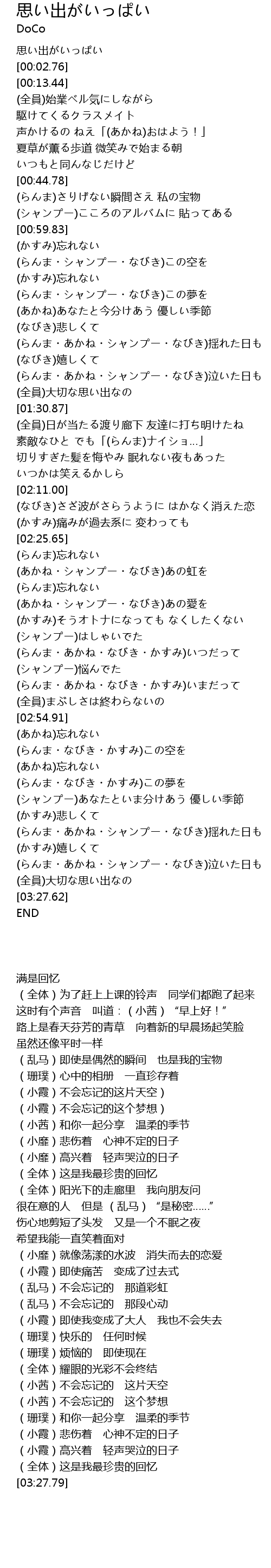| [03:22.43] | (全体)这是我最珍贵的回忆 |