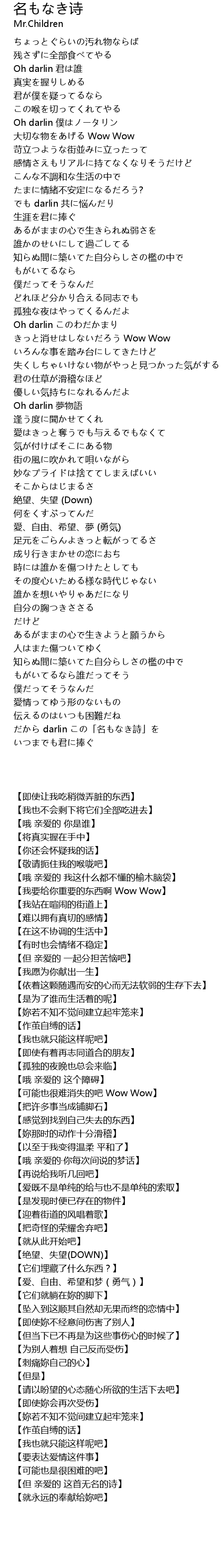 | [05:06.17] | だから darlin この「名もなき詩」を |